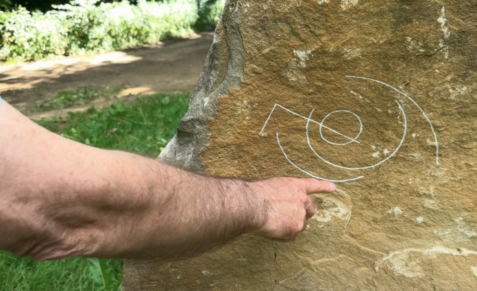 Dans notre reportage, Pascal Wuttke retrace le parcours initiatique des amoureux qui empruntent ce chemin, de la souche du vieux druide jusqu’au menhir gravé par le fils de l’auteur, et qui symbolise le « chemin », plus important que l’arrivée. Sur cette pierre de carrière, la terre, le ciel, la lune et le soleil sont liés entre eux par une clé de voûte symbolisant une force mystique qui relie tous les êtres.
