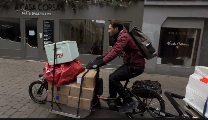 Dans notre rubrique ce mois-ci, nous enfilons les bottes de William Fraolini, co-fondateur des Coursiers de Metz. Heppner, DPD ou encore Lyreco confient leurs colis aux coursiers de Metz, pour livrer les commerçants en cœur de ville à vélo. Dans un centre-ville majoritairement piéton, où les horaires de livraison en voiture ou camion sont réglementés par arrêté municipal, les Coursiers de Metz, créé en 2021, permettent d’irriguer la ville à toute heure et limier les nuisances sonores notamment.