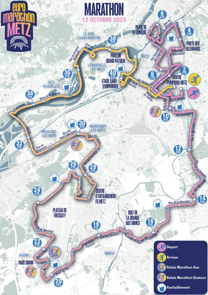 Le parcours de l’Euro Marathon de Metz 2025 est désormais connu. Il traversera huit communes au long des 42 kilomètres de course.