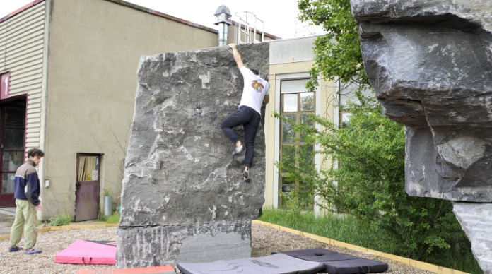 Ce jeudi matin a été présenté un prototype Monolithe à Bliiida. Il s’agit d’un bloc de roche conçu pour faire de l’escalade en milieu urbain.