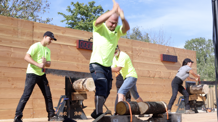Ce week-end, l’étang de l’Evêque à Sarrebourg accueillait un évènement pour le moins inhabituel : une compétition de bûcheronnage sportif. Par équipes de 5, les bûcherons sont répartis à des postes divers et doivent couper les différents modules de bois le plus rapidement possible, afin que le grimpeur puisse faire sonner la cloche et stopper le chrono… Démonstration en images.