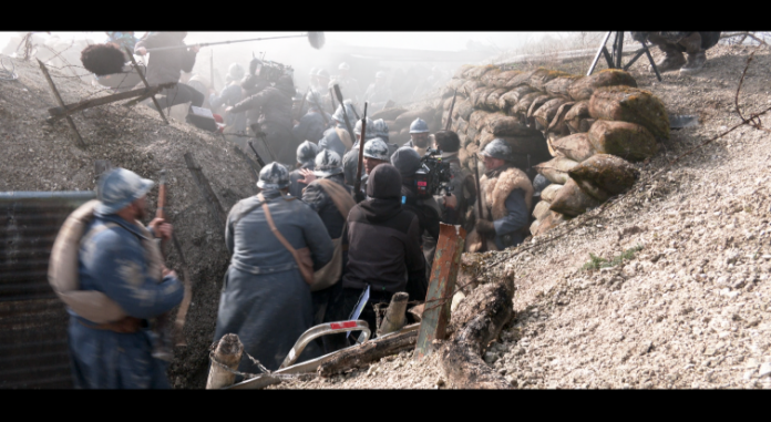 Le tournage se déroule sur le site de la Main de Massiges, dans la Marne. Un décor de choix puisque ces plaines ont vu évoluer les troupes françaises et allemandes pendant la guerre. Hugo Becker dirige plus de 80 figurants bénévoles venant principalement de la Meuse, via l’association Connaissance de la Meuse. 7 jours de tournage sont prévus pour réaliser ces quelques scènes de guerre, grandeur nature.