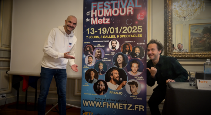 9 spectacles, 8 salles, 7 jours… voilà les chiffres qui trustent l’affiche de la 3e édition du festival d’humour de Metz. Du jamais vu. « Ce festival monte en puissance, commente le maire François Grosdidier. Il fait venir les gens de plus en plus loin, comme les autres événements culturels de la ville ». Effectivement, après quatre petites représentations en 2023, puis six en 2024, cette année, ce sont pas moins de neuf spectacles qui seront donnés à travers la capitale mosellane. Côté fréquentation, là aussi l’événement prend encore un peu plus d’ampleur. Les organisateurs attendent près de 3 000 entrées, c’est deux fois plus que lors de la première édition. « De savoir que Metz est aussi une scène émergente de l’humour, c’est formidable. Cela va amener des jeunes qui ont envie de faire rire le public, à le faire sans s’expatrier », analyse l’humoriste messin Michaël Hirsch.