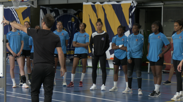 Sur le terrain d’entraînement des Arènes, un effectif remanié, en raison des huit sélections internationales, mais aussi des arrivées estivales : la pivot Anne Emmanuelle Augustine, de retour après deux saisons à Nice, la vétéran et récente porteuse de torche olympique Allison Pineau, la récente championne du monde U20 Manon Errard, mais aussi l’intégration au groupe de plusieurs joueuses du centre de formation.