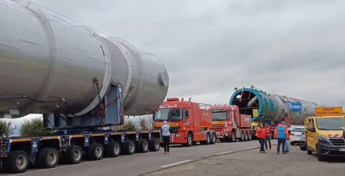 Entre le Saulnois et le Pays de Nied, un convoi de deux camions de 295 tonnes et 66 mètres de long a traversé la campagne pour rejoindre Carling.