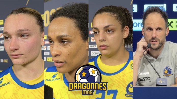 Le scénario a été cruel pour les Dragonnes ce samedi 31 mai. Opposé à Odense en demi-finale, Metz Handball a une nouvelle fois essuyé une défaite aux portes du rêve. Comptant jusqu’à sept buts d’avance en deuxième mi-temps, les coéquipières de Sarah Bouktit ont vu l’écurie danoise compenser leur retard pour arracher une prolongation. Au bout du suspens c’est Odense qui s’est finalement imposé, brisant à la fois le rêve de titre jaune et bleu, ainsi qu’une série de victoires consécutives hors normes. À l’issue de cette seule défaite de la saison et non sans émotion, Sarah Bouktit, Allison Pineau, Léna Grandveau et Emmanuel Mayonnade ont pris la parole au micro de Moselle TV.