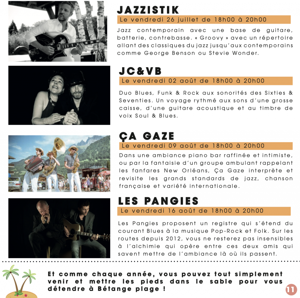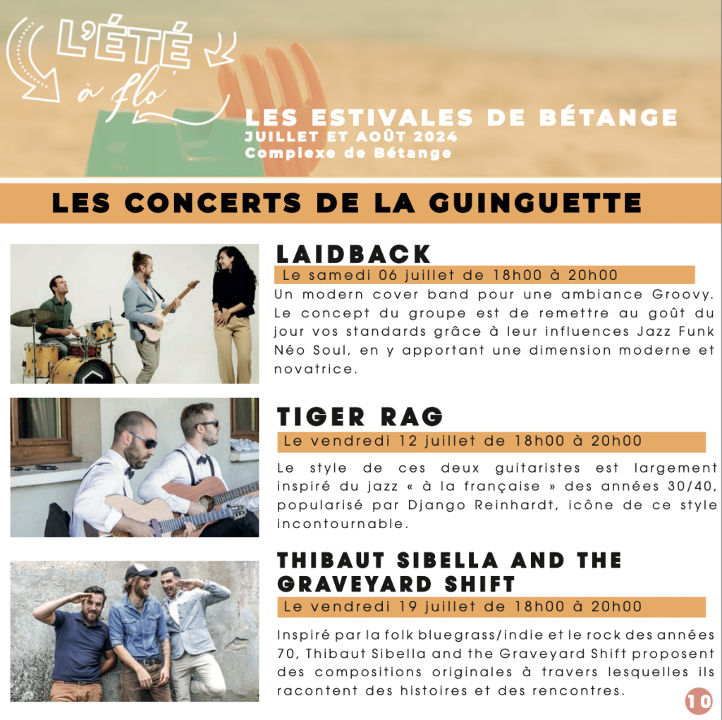 À Bétange, l’été sera tout aussi animé. De nombreux concerts auront lieu au complexe de Bétange, avec des groupes comme LaidBack, Tiger Rag, JC&VB et Les Pangies. Le jeune public aura aussi son lot d’activités. Le 10 juillet, embarquez pour un voyage à la découverte des habitants du petit monde de 16h00 à 16h45.