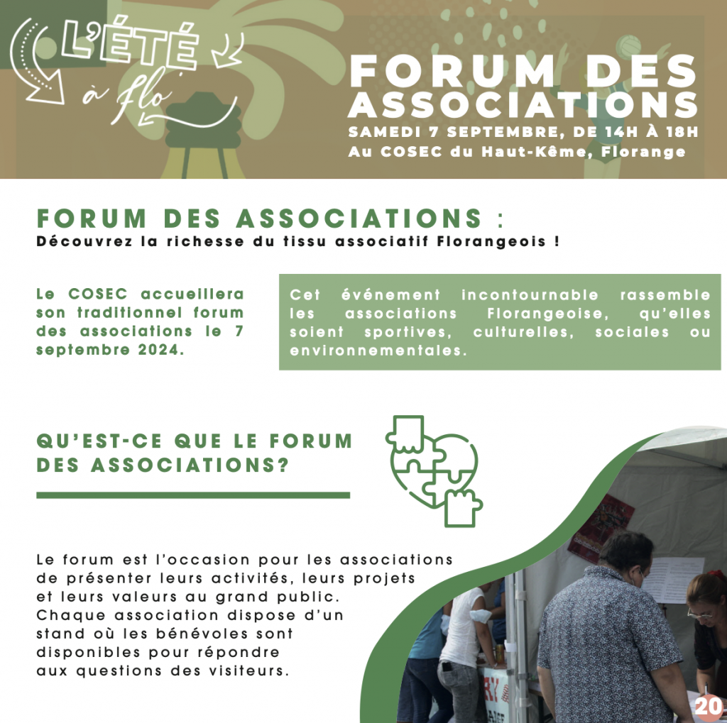 Les festivités se prolongent en septembre avec le forum des associations le 7 septembre, un événement rassemblant les associations sportives, culturelles, sociales et environnementales de Florange.