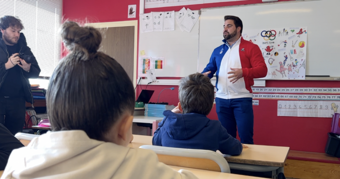 Quentin Bigot, l’athlète spécialisé dans le lancer de marteau, s’est rendu dans une école d’Ay-sur-Moselle. Dans les classes, il a pu rencontrer des jeunes de CP.