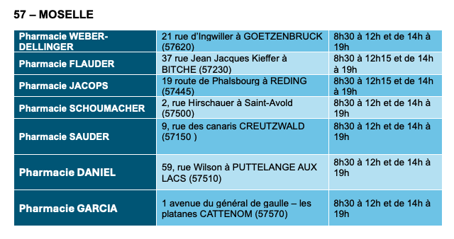 9h50L’ARS a mis en ligne la liste des pharmacies de Moselle réquisitionnées pour assurer une continuité de services et de soins lors de cette journée où toutes les pharmacies font grève. Voici la liste.