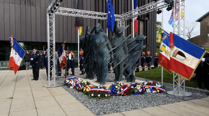 Ce dimanche 13 octobre, c’est chargé d’émotions que s’est déroulée la journée de la mémoire mosellane sur le parvis du Musée départemental de la guerre de 1870 et de l’annexion à Gravelotte. Alors que l’on célèbre cette année le 80ème anniversaire de la libération de la Moselle, un monument est désormais érigé devant le musée à Gravelotte, à l’initiative du Conseil départemental de la Moselle. Son nom : la Moselle résiliente, sculptée par Xavier Dambrine.