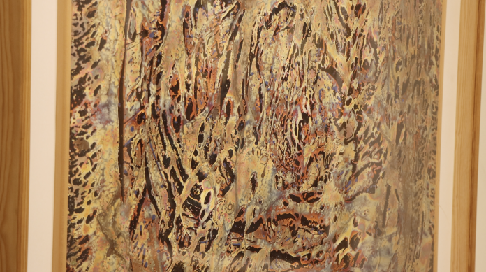 Peinture sur cuivre, encres de Chine… c’est un cocktail de matières et de gestes qui font de ces toiles, des œuvres uniques. 41 ont été exposées au château de Courcelles, des créations abstraites où la gestualité de l’artiste invite à un voyage intérieur.