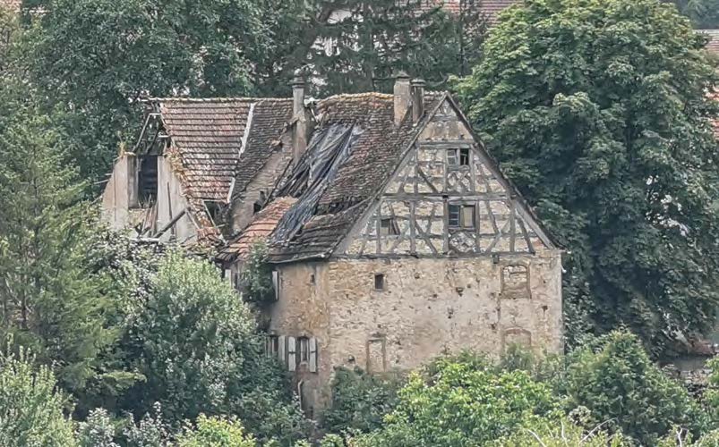 « Cette maison ancienne située dans le village d’Obergailbach est un trésor à préserver. Le grand pignon, coté Nord, est marqué par des fenêtres à meneaux et un colombage dont le style est daté de la fin de la Renaissance. Elle est en cela potentiellement une des plus anciennes maisons du village et son pignon serait un des derniers de ce type en Lorraine. La maison dispose également de caves sur deux niveaux tandis que les pièces de vie et les chambres sont ornées de poutres sculptées. Une statue de Saint Maurice, saint-patron du village, en grès rose des Vosges, est placée dans l’angle de la bâtisse. » Les travaux sur le charpente et la toiture démarreront à l’automne 2025 pour une fin prévue à l’été 2026.