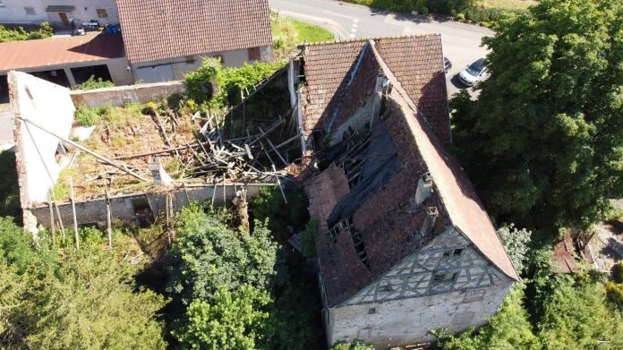 « Cette maison ancienne située dans le village d’Obergailbach est un trésor à préserver. Le grand pignon, coté Nord, est marqué par des fenêtres à meneaux et un colombage dont le style est daté de la fin de la Renaissance. Elle est en cela potentiellement une des plus anciennes maisons du village et son pignon serait un des derniers de ce type en Lorraine. La maison dispose également de caves sur deux niveaux tandis que les pièces de vie et les chambres sont ornées de poutres sculptées. Une statue de Saint Maurice, saint-patron du village, en grès rose des Vosges, est placée dans l’angle de la bâtisse. » Les travaux sur le charpente et la toiture démarreront à l’automne 2025 pour une fin prévue à l’été 2026.
