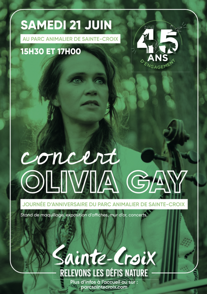 La violoncelliste Olivia Gay sera en concert dans le parc de 15h30 à 17h (deux sessions), accessible sur inscription en cliquant ici. À l’issue, une séance de dédicaces et vente de CD est prévue.